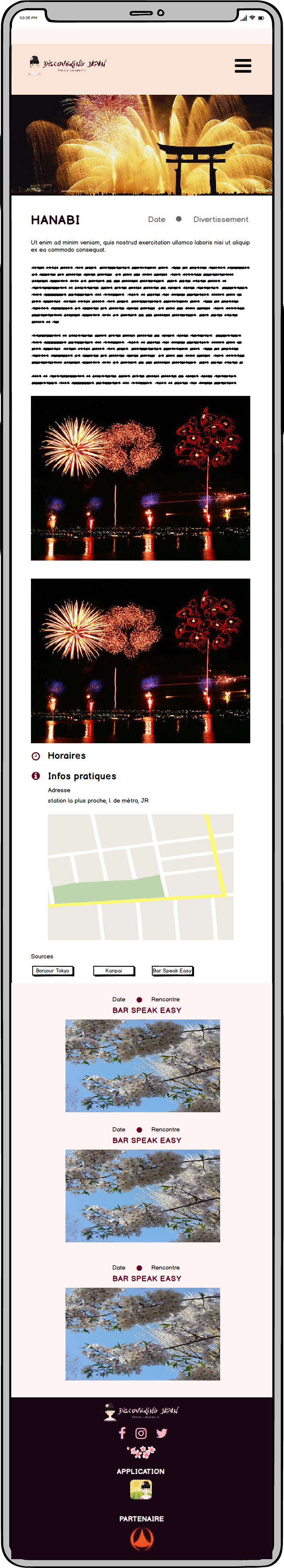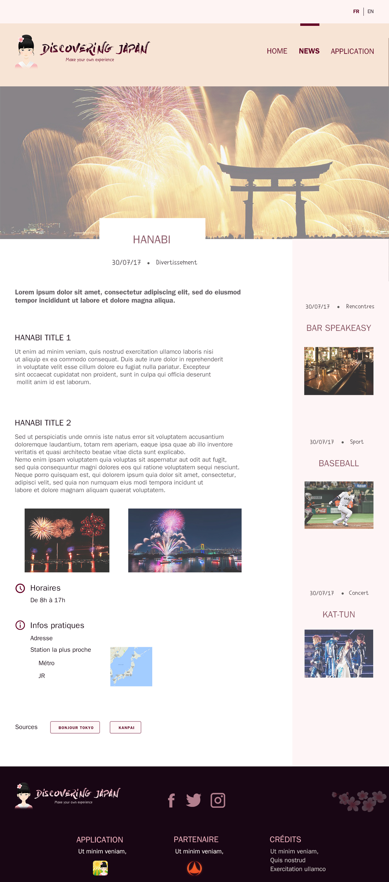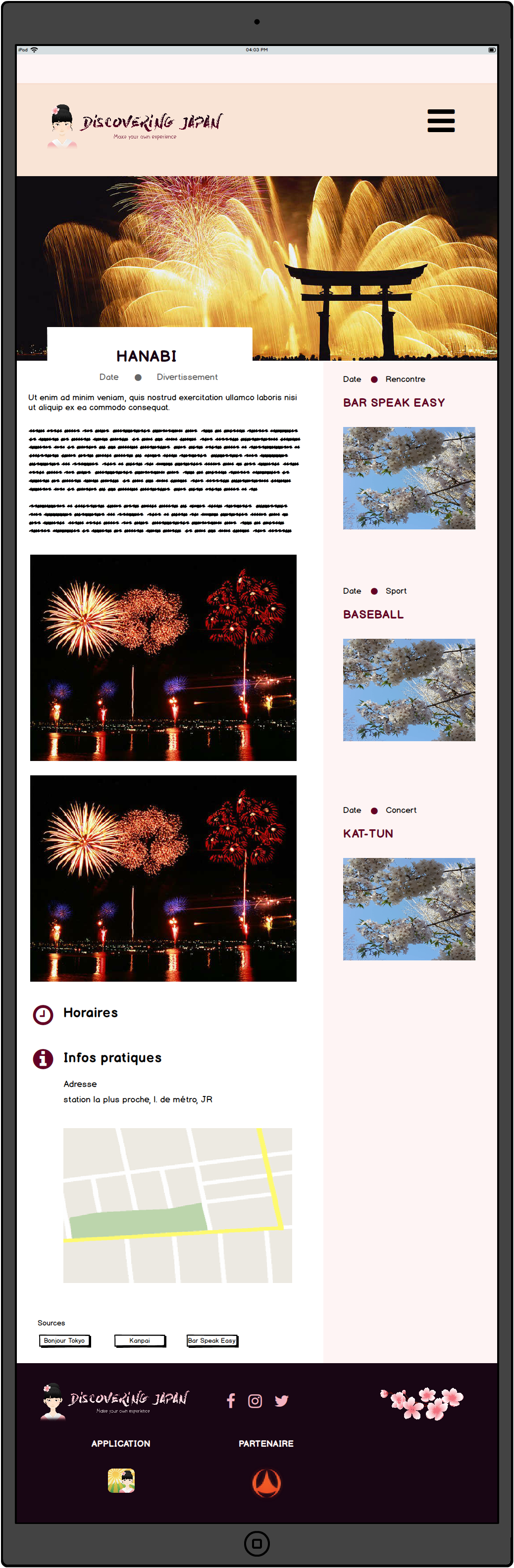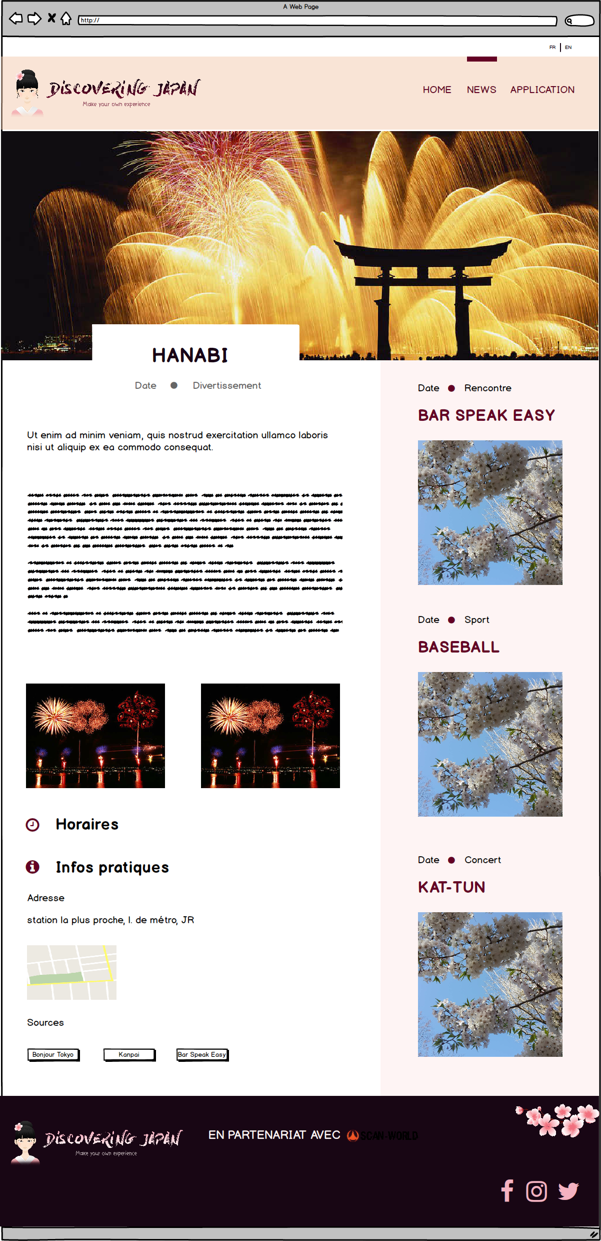 L’objectif principal est de pouvoir présenter un site fonctionnel développé avec WordPress. À long terme, Le site devra regrouper sur une carte des points d’intérêts basiques (restaurants, ATM…) et spécifiques (neko café, cérémonies de thé, onsen…) que l’utilisateur pourra consulter et choisir avec un système de checkbox.